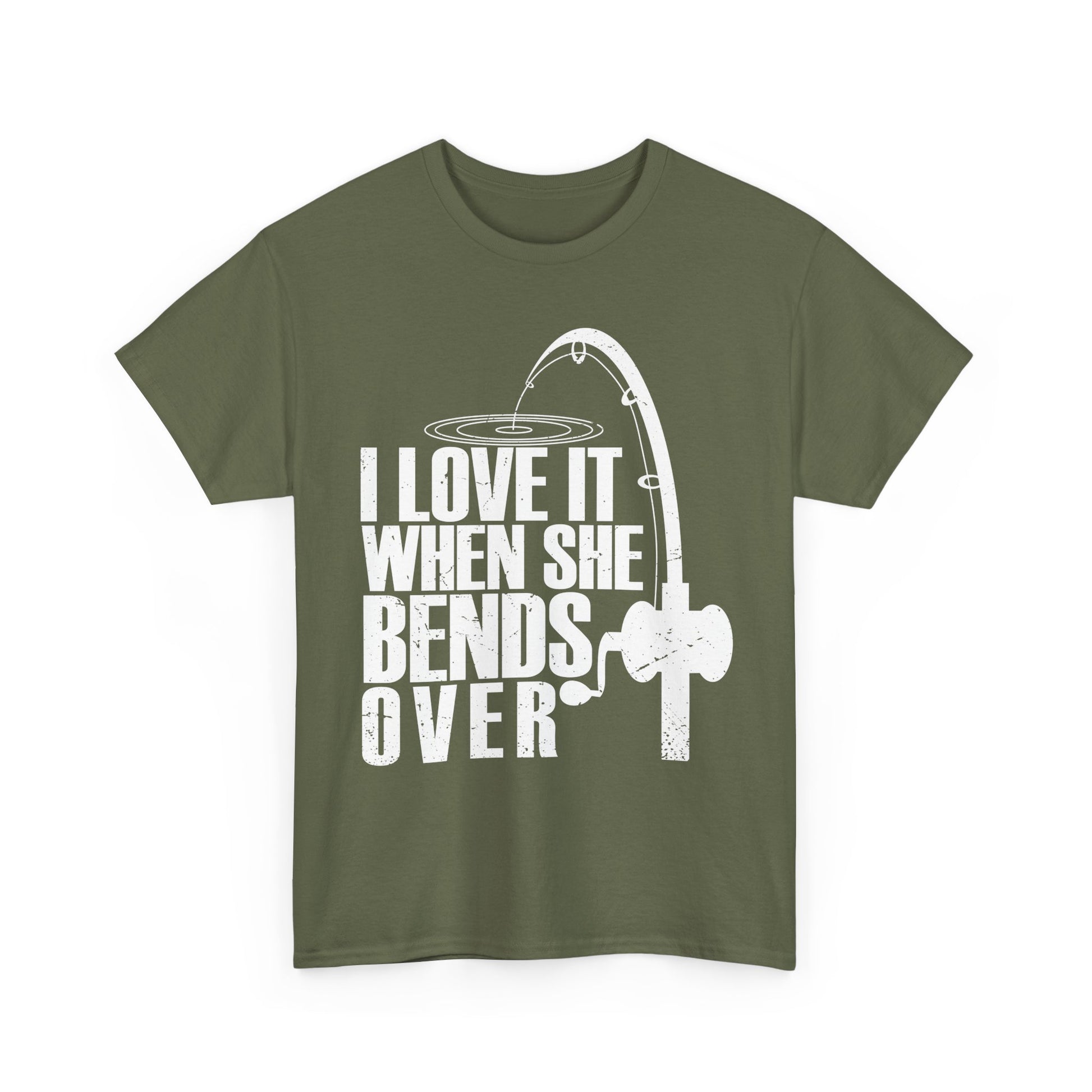 - This fishing T-Shirt is perfect for the fisherman dad in your life. Fishing tshirt saying "I Love It When She Bends Over " Ideal for outdoor enthusiasts, this shirt is a great gift for Father's Day or any special occasion.